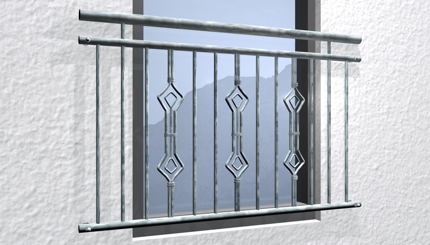 Documents "Balcon à la française en acier galvanisé ornement sablier triple "