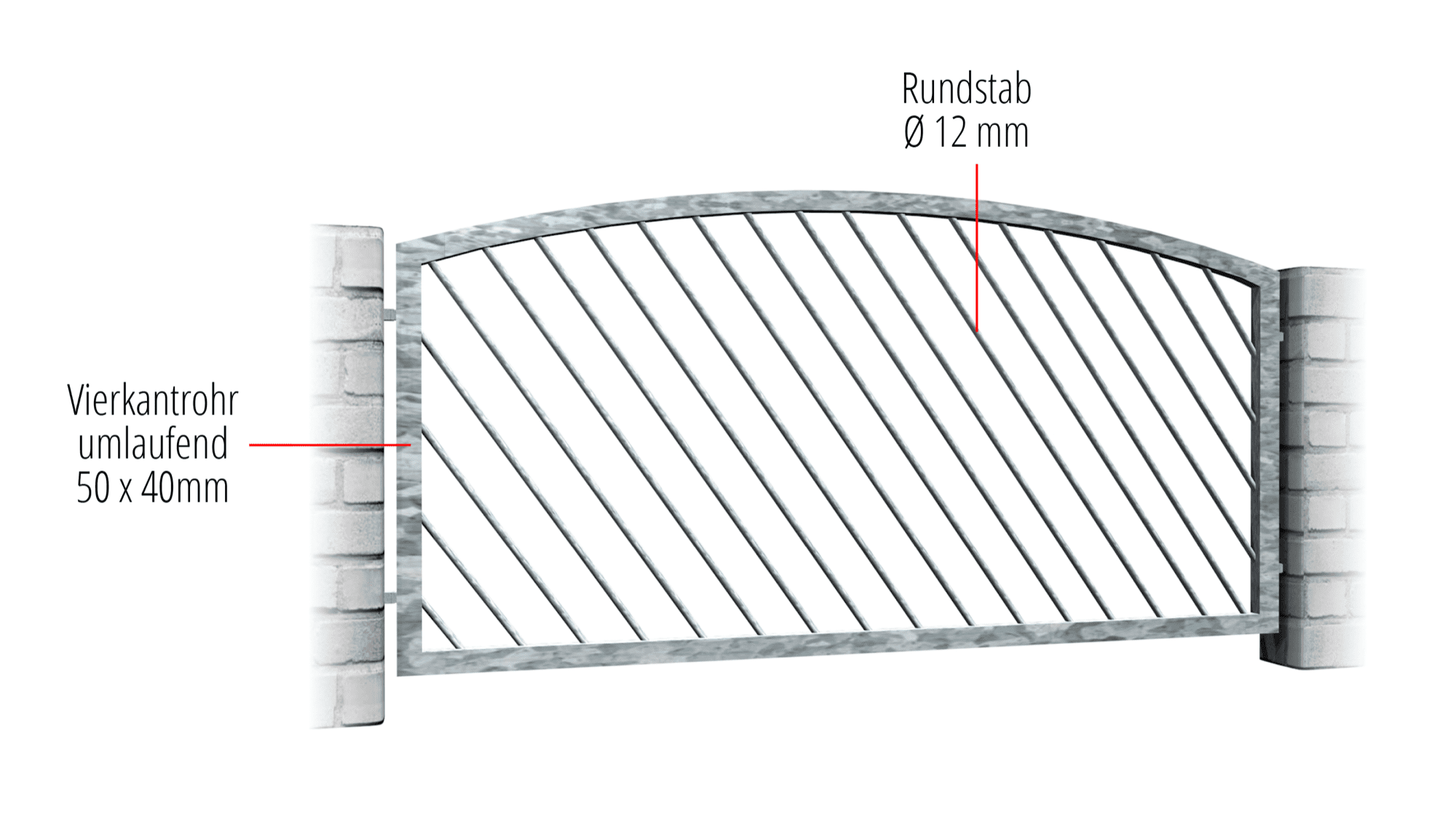 - Anzahl der Stäbe sowie die Stababstände werden durch die individuelle Größe des Zaunelement bestimmt. Der maximale Stababstand beträgt 120 mm.
