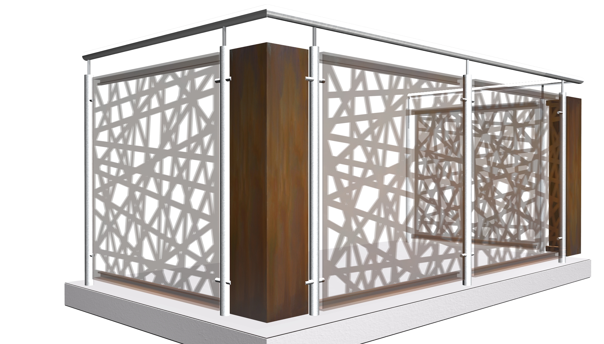 - Cet article est un élément d'angle pour revêtements de balcon réalisé sur mesure pour être monté sur une balustrade existante, et non une balustrade de balcon complète